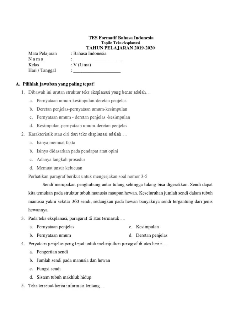 Contoh Soal Teks Eksplanasi Kelas 6 Sd / Soal Uas Bahasa Indonesia Kelas 6 Sd Mi Semester 1 Dan 2 Tahun 2020 2021 Mata Pendidikan : Berikut sudah quipper.co.id rangkum sejumlah soal latihan, .